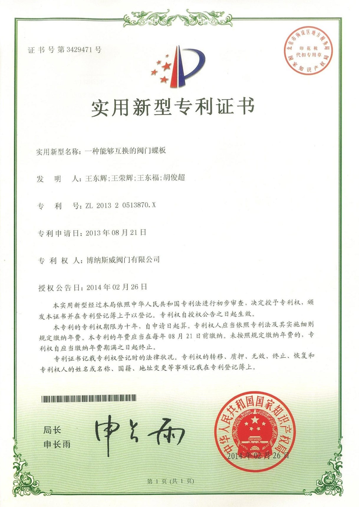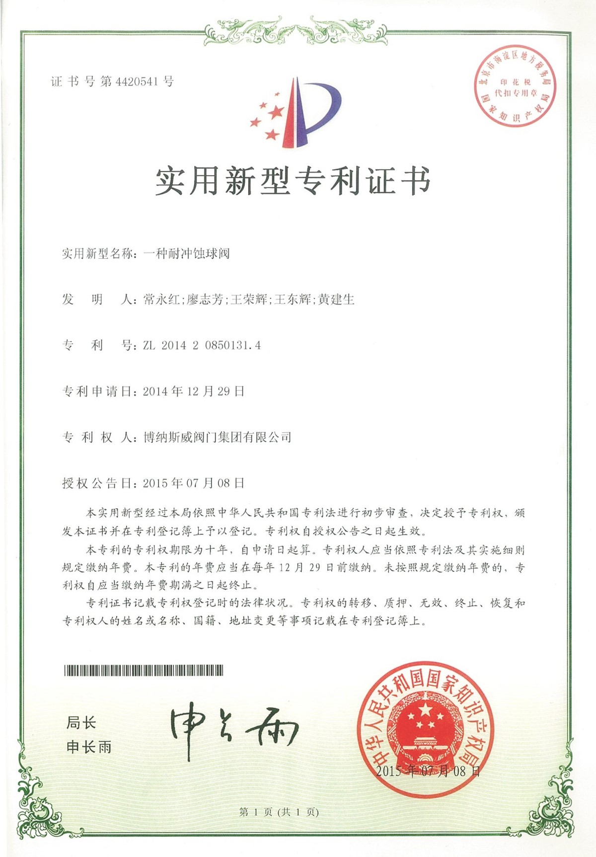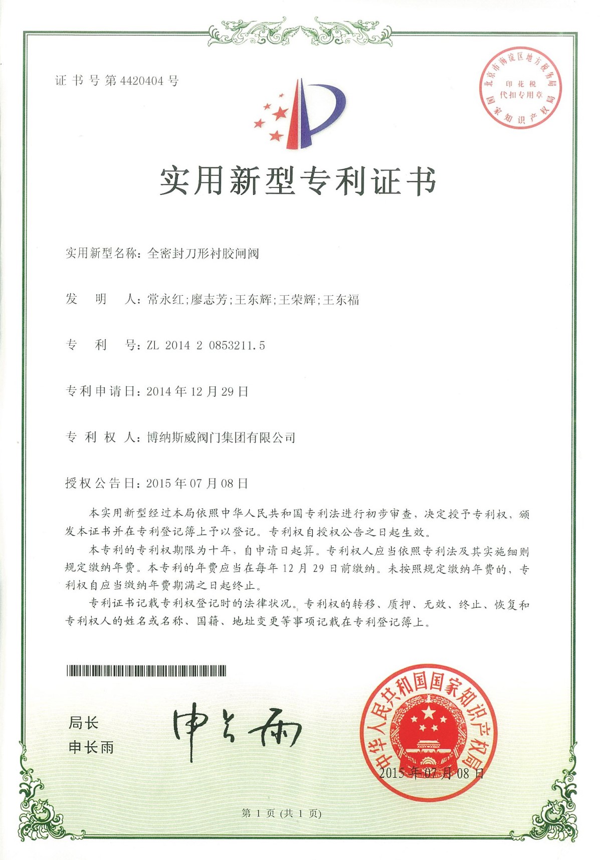 專利證書