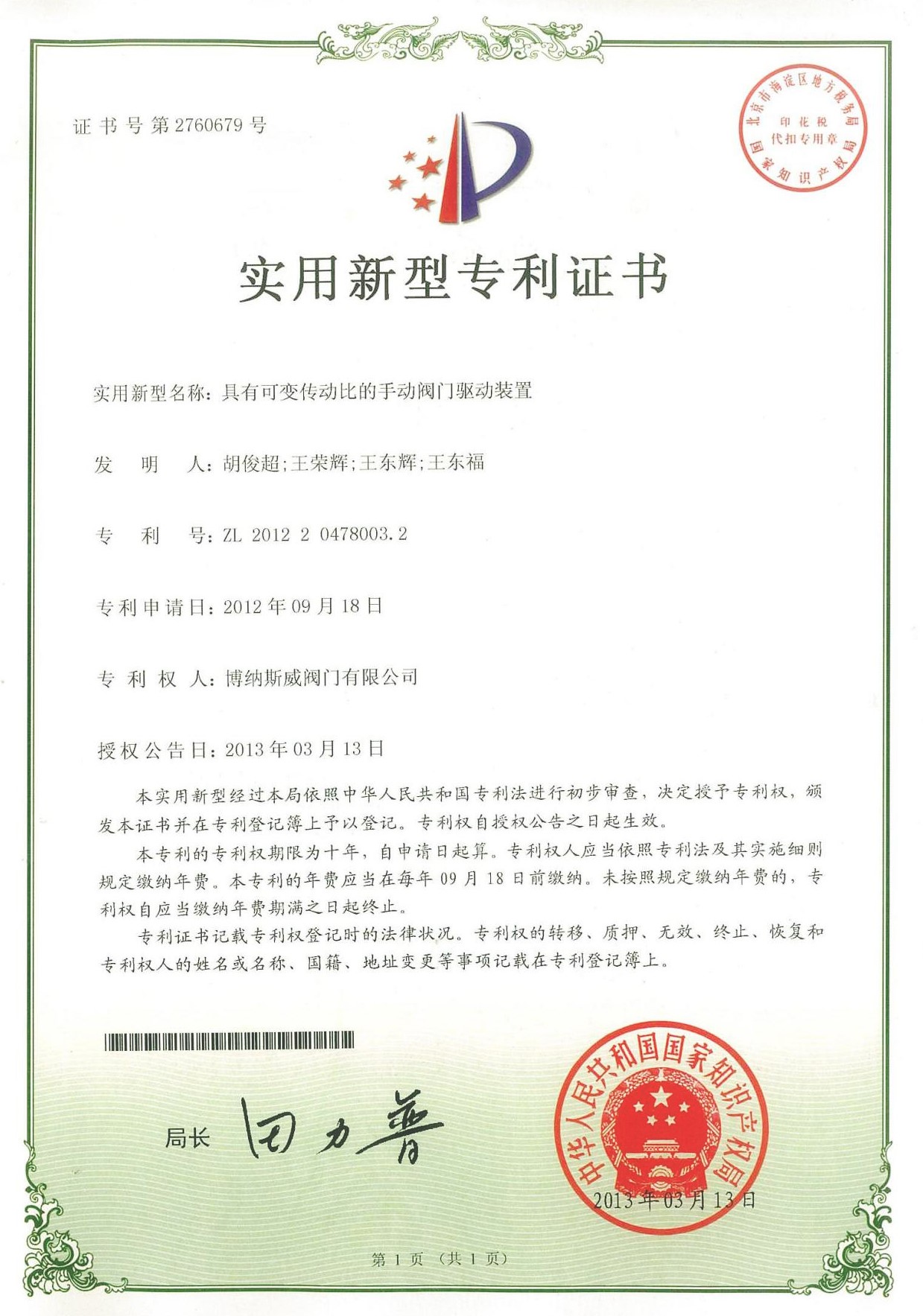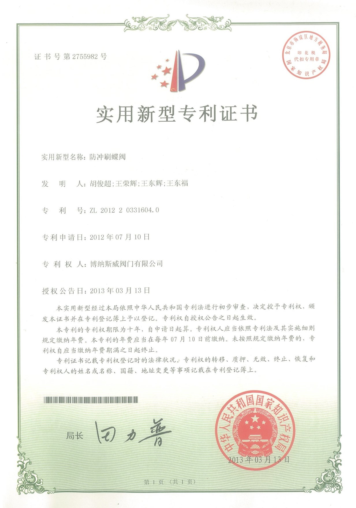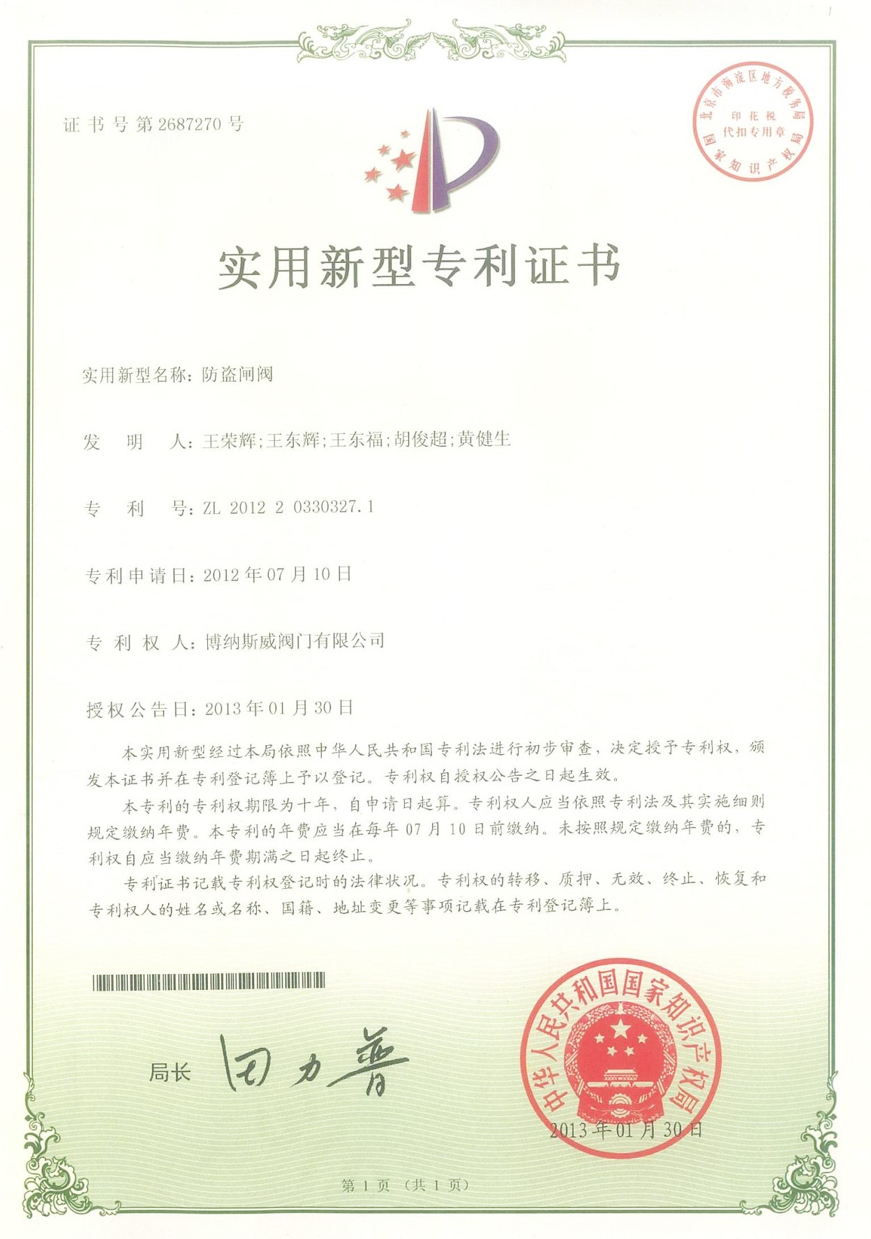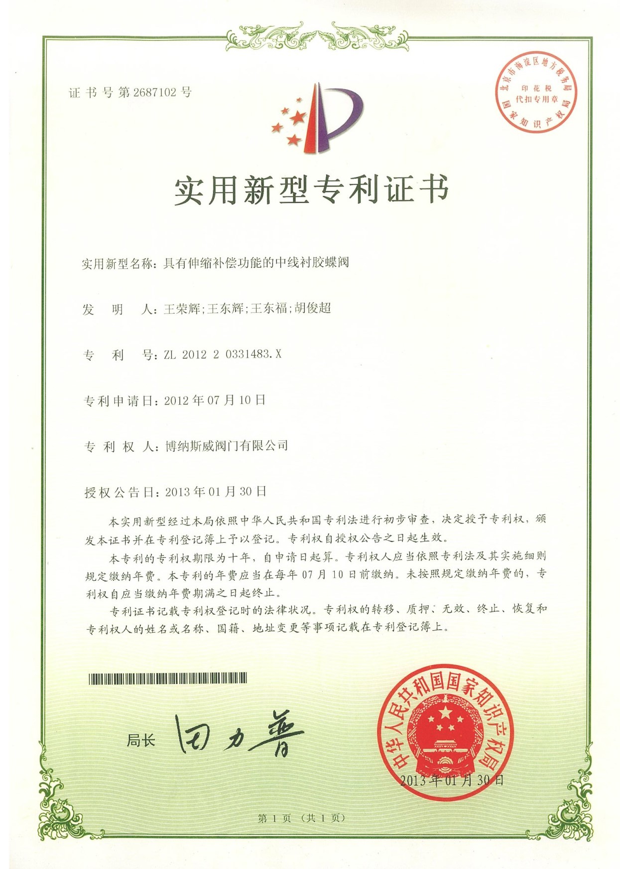 專利證書