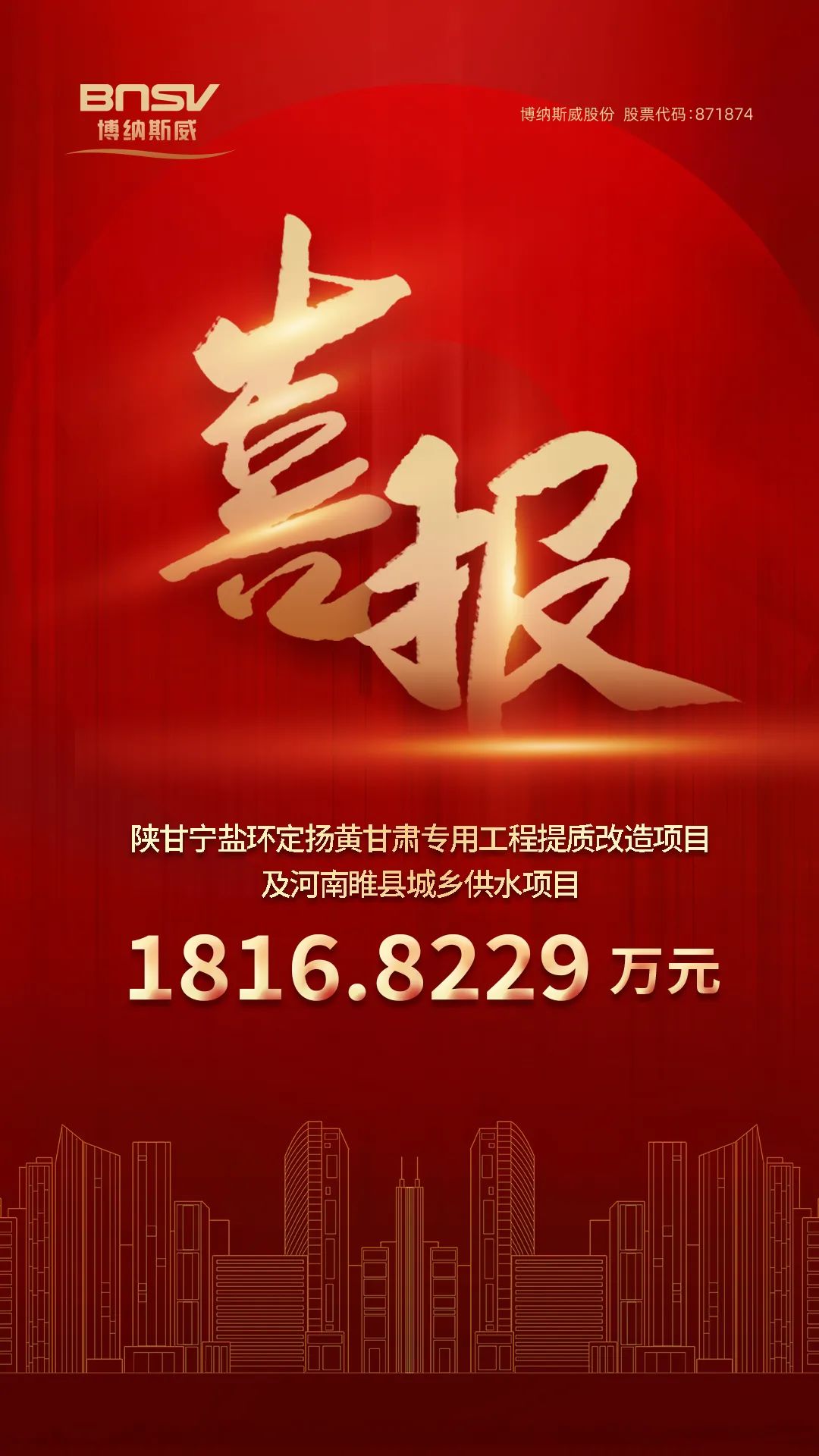喜報!博納斯威中標陜甘寧鹽環定揚黃甘肅專用工程提質改造項目及河南睢縣城鄉供水項目1816.8229萬元