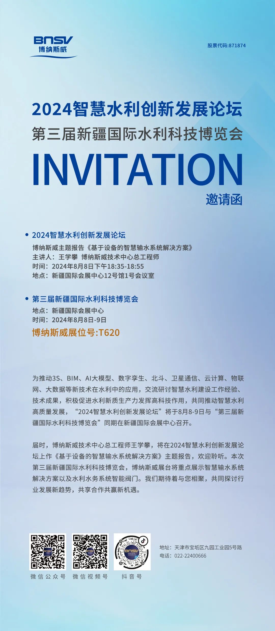 博納斯威 | 誠邀蒞臨2024智慧水利創新發展論壇&第三屆新疆國際水利科技博覽會