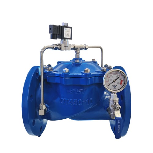 由主閥、電磁導閥、針閥、球閥、微型過濾器和壓力表組成水力控制接管系統。通過電磁導閥可以實現對閥門開啟和關閉的遙控。加裝附加裝置后,可控制開啟和關閉的速度。水力電動控閥利用導閥控制閥門的開啟和關閉,節省能源。可代替其它閥門大型電動裝置。電磁水力控制閥產品廣泛用于高層建筑、生活區等供水管網系統及城市供水工程。