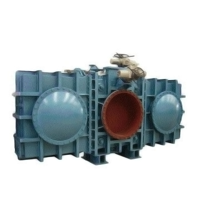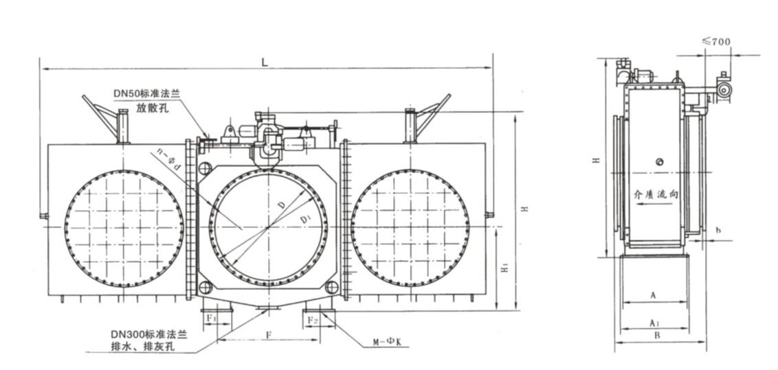 由主副閥體、閥板、伸縮節、固定套、電液推桿夾緊機構、行走電裝、限位器、左、右側閥體等部件組成。關閥:電液推桿驅動彈簧夾緊機構,使閥板脫開,到位后,行走電裝啟動,驅動閥板行走由開到關,到位后,電液推桿反向運動,彈簧夾緊機構自動夾緊到位,關閥結束。開閥則反之。